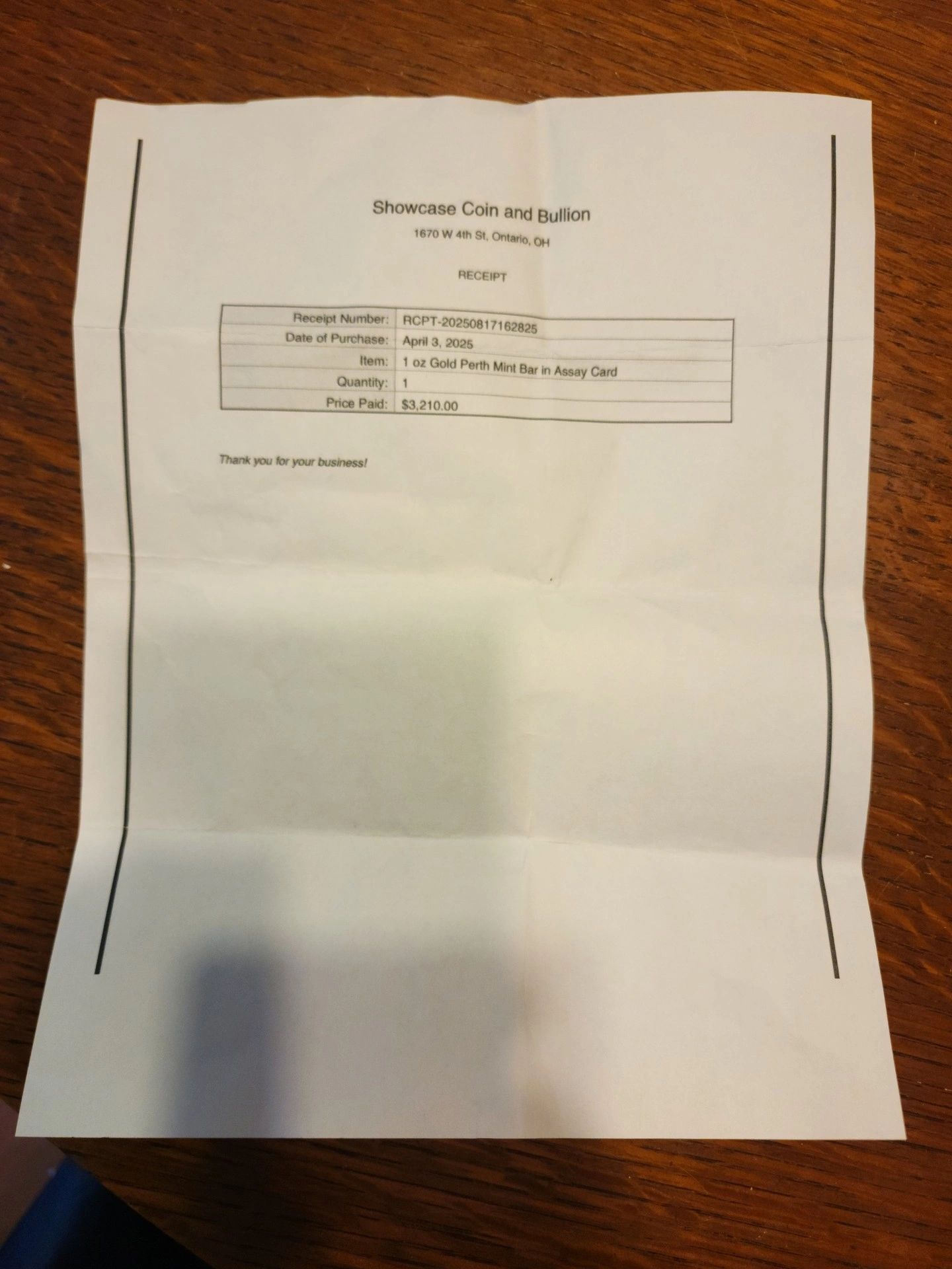 We have been made aware of a man in Michigan selling FAKE Perth mint gold bars and claiming they are real by providing a FRAUDULENT Receipt from our store